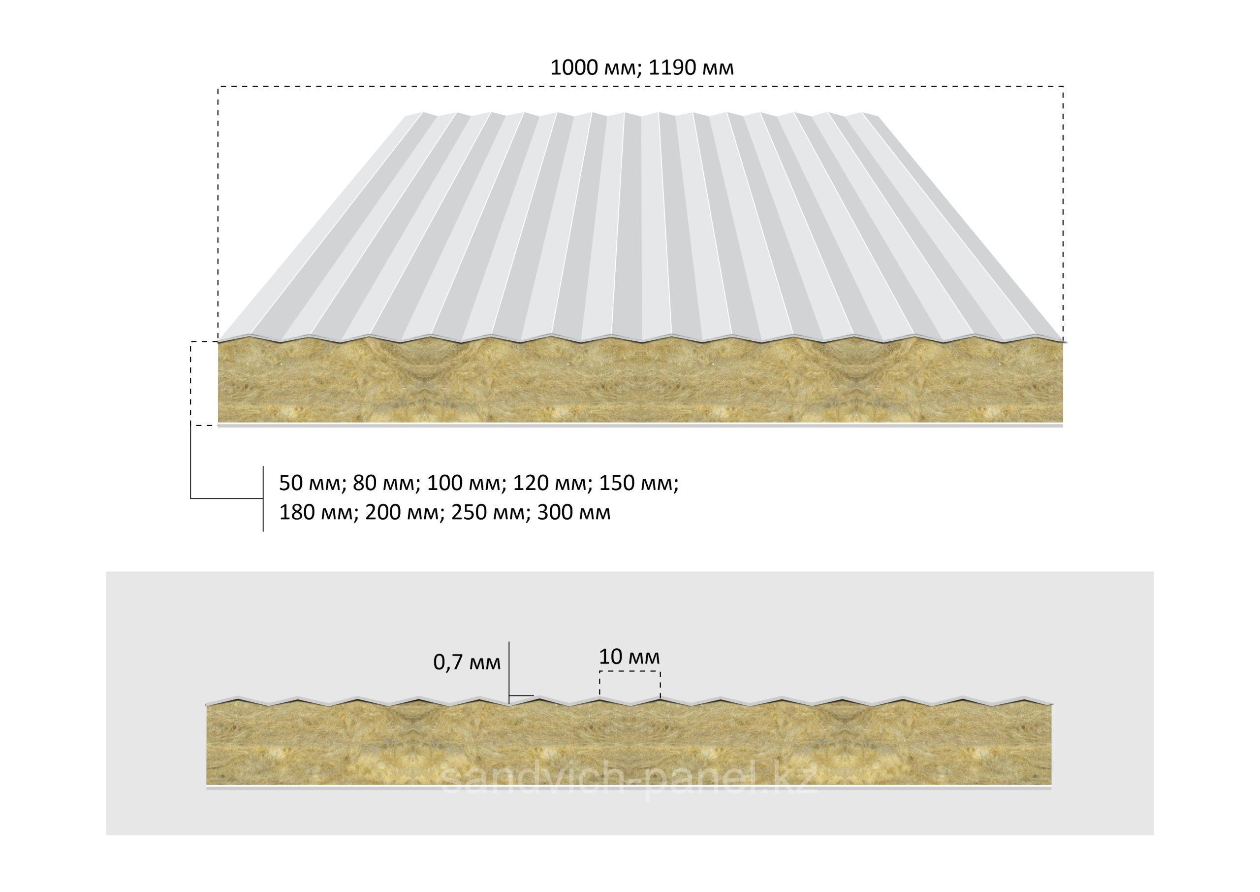 Заказать сэндвич панели можно шириной — 1000мм (кровельные сэндвичи) и 1000-1190мм (стеновые сэндвичи).